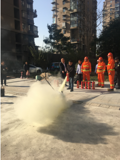消防逃生演练结束后,为进一步巩固实践效果,项目负责人还现场演示了灭火器使用的操作程序,并让大家亲身体会使用灭火器灭火的感受,使参训工作人员及业主都能正确掌握灭火器的操作方法。 |