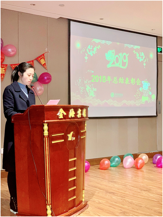 办公室副主任周丽容宣读《2018年度评优文件》,并由公司领导进行颁奖;