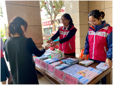 2018-10-17       为弘扬中华民族尊老、敬老、爱老、助老的传统美德,让老年人度过一个愉快、祥和的节日,重阳节当天,钱江府服务中心在小区西大堂开展了主题为:“尽孝心,传孝道”的关爱老人活动,活动现场有理发、量血压、测血糖、健康咨询以及法律咨询、社区工作讲解等。