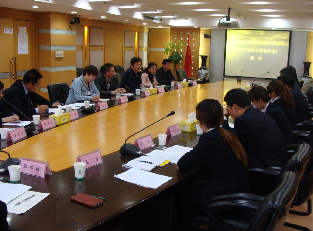 2014年4月23日,杭州市住房保障和房产管理局领导一行莅临我公司考察调研,并对修订后的杭州市物业管理条例进行宣讲。