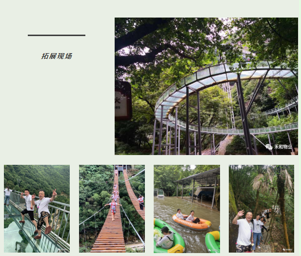 各成员勇于挑战自我,集体参加了玻璃栈桥、玻璃漂流及高空云梯等惊险刺激的项目。